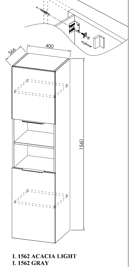 - Димензија: ширина 450 mm / висина 1560 mm / длабина 366 mm