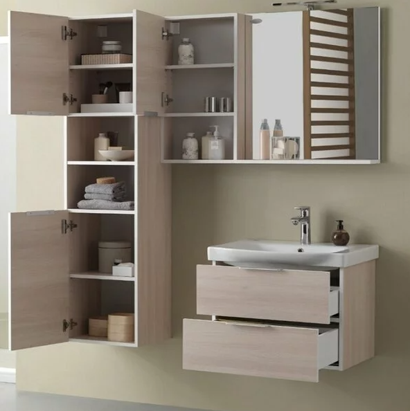Мебелот Лана со три главни елементи е достапен во сива боја и во боја на светол багрем.
