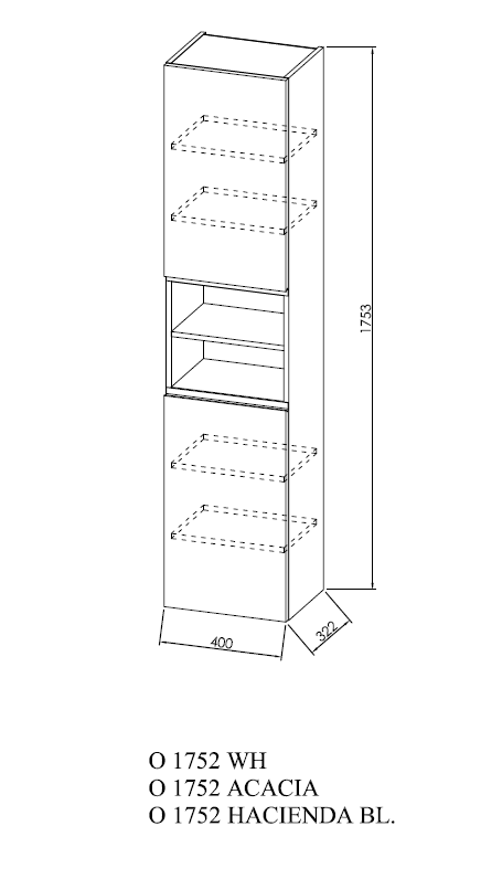 - Димензии: ширина 400 mm / висина 1753 mm / длабина 322 mm