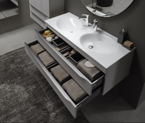 Фиоките со метални тенки ѕидови со меко затворање безбедно ќе ги чуваат сите ваши аксесоари во бањата.