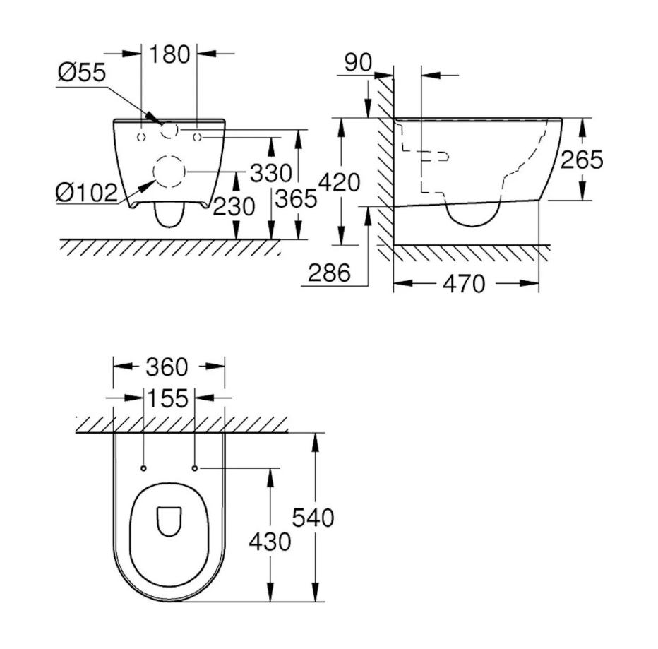 Во брилијантна алпска бела боја, керамичката површина е подобрена со додавање на следните најсовремени технологии: премазот GROHE AquaCeramic нуди перформанси против лепење, а застаклувањето GROHE HyperClean има антибактериски ефект. Тоалетната школка е совршено усогласена со седиштето и капакот  со функција за меко затворање (39577001).