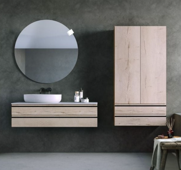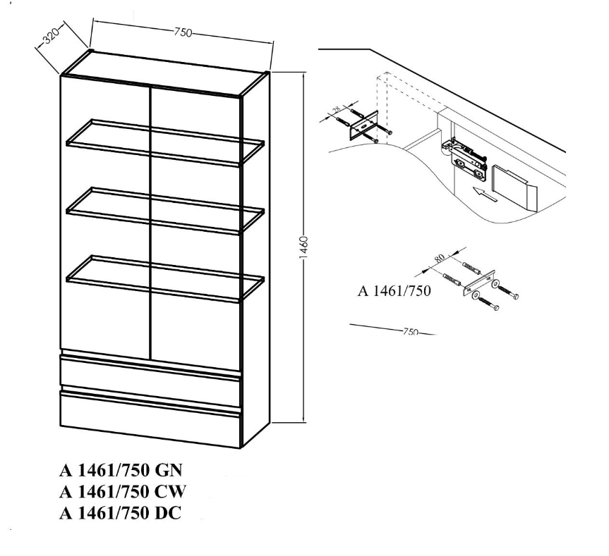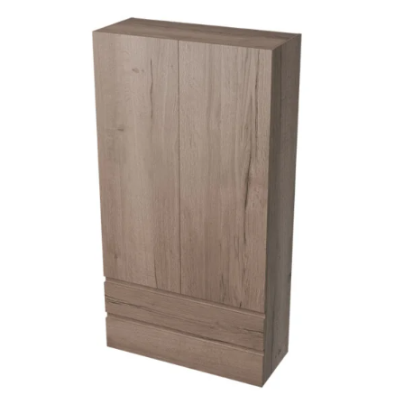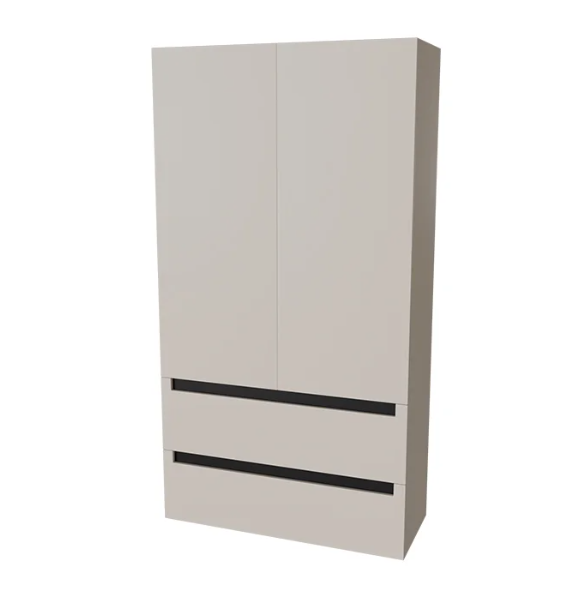 Висечки двоен ормар од серијата Alexis, произведен од брендот Kolpasan. Овој исклучителен кабинет не само што визуелно го збогатува просторот, туку обезбедува и многу простор за складирање за сите потребни работи. Корпусот е изработен од издржливи ламинирани панели (LTD) изработени од рафинирана иверица, додека предниот дел од фиоките и вратите е обложен со 3D фолија панел (MDF) во иста боја како и корпусот. Системот TIP-ON ви овозможува да ги отворате и затворате вратите со еден допир, а на врвот има 2 големи врати со простор поделен со 3 дрвени полици. На дното од куќниот кабинет има 2 практични метални фиоки, опремени со елегантни црни рачки од четкан алуминиум. За удобна употреба, фиоките имаат систем за тивко затворање со интегрирани амортизери.