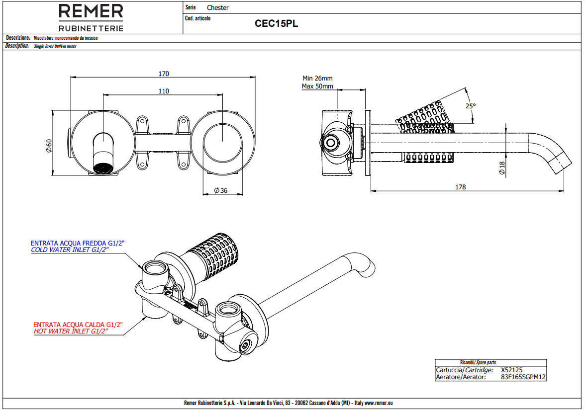 Вградна чешма за мијалник од серијата Celebrity,произведена од брендот Remer.