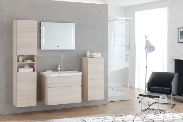 Мебел изработен од оплеменета иверка, обложен со ПВЦ фолија и вградени рачки на предната страна. Керамичка мијалник. Ight Светло: GOOGO 60, 80, 100 LED, Т: 9,5 W / 11,5 W / 13,5 W↵ Премногу, 60, 80, 100 LED, SW, S: 7 W