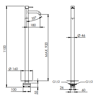 Чешма за мијалник од под, од серијата X-Style,произведена од брендот Remer.